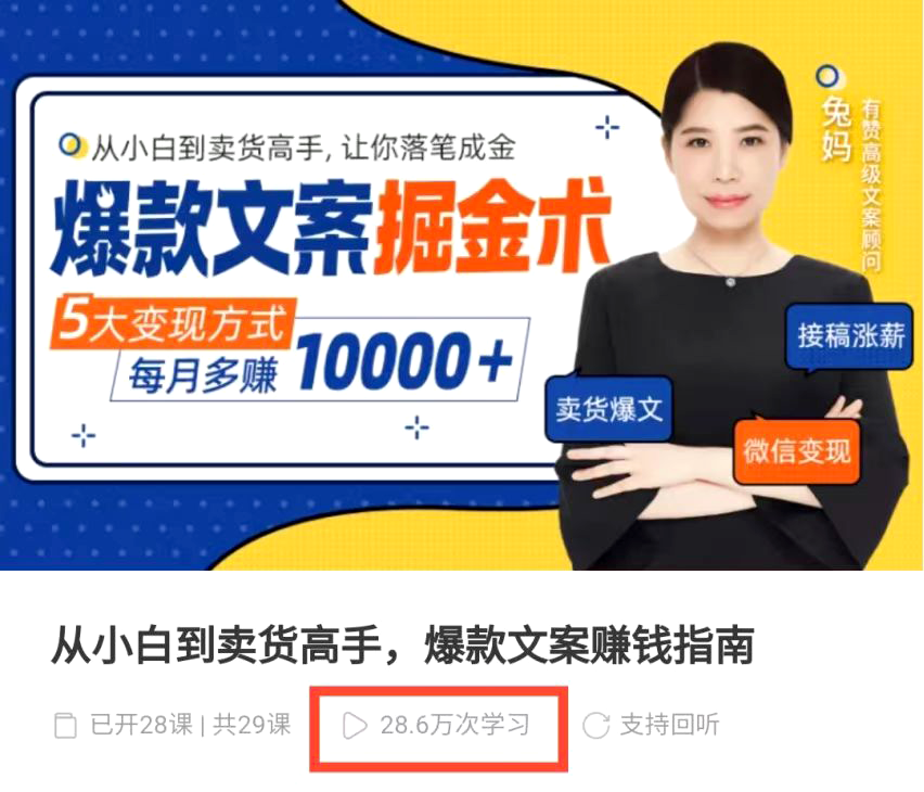 我发现很多人都很忙,喜欢囤知识但没时间去实践。为了帮大家真正靠文案赚到钱,我把自己的实战经验总结成了一套简单易懂、实用性强的课程。让大家一听就明白,一学就会用。