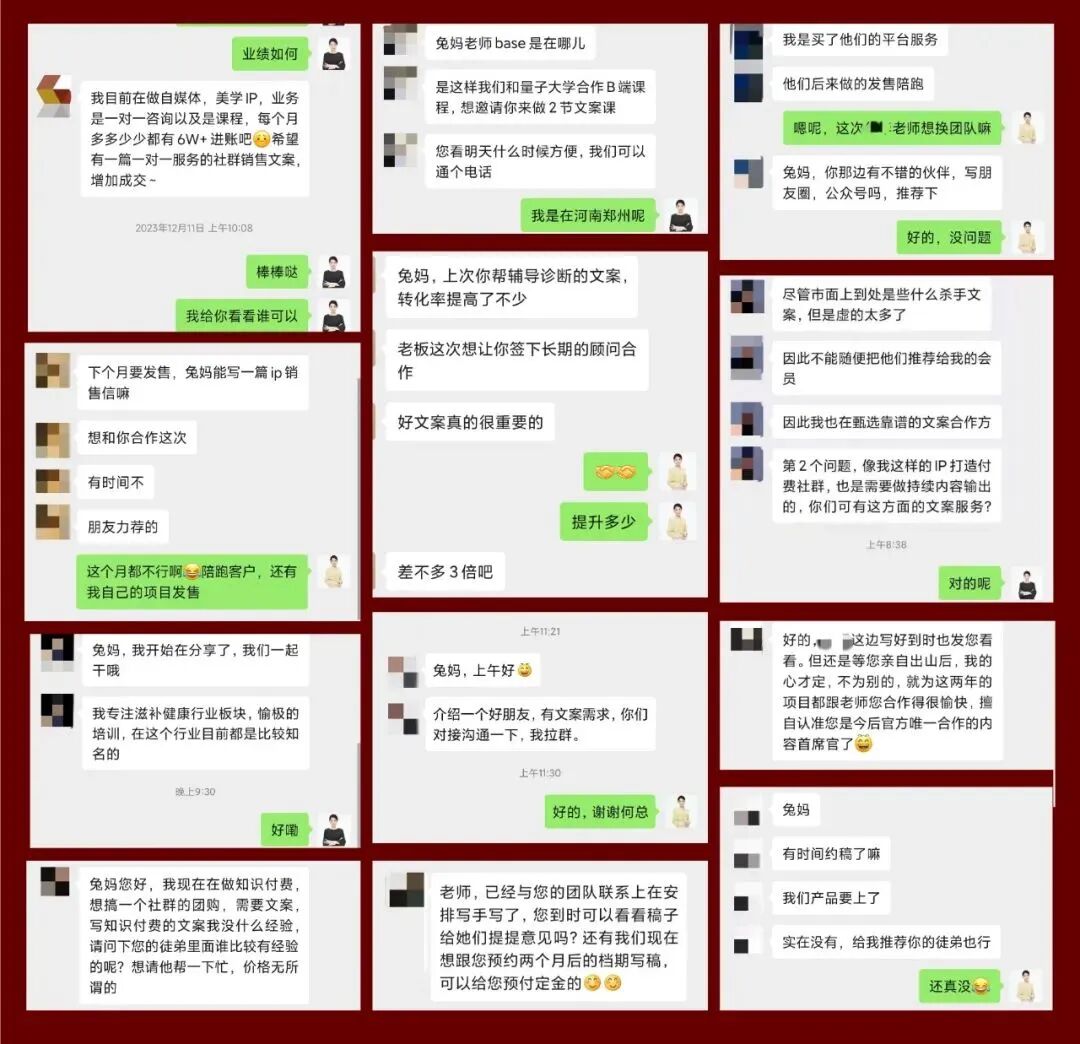 更重要的是,我教会了一万多名学员怎么写文案,让他们的收入翻了2到18倍。每天都有很多学员来跟我分享他们的成功故事。
