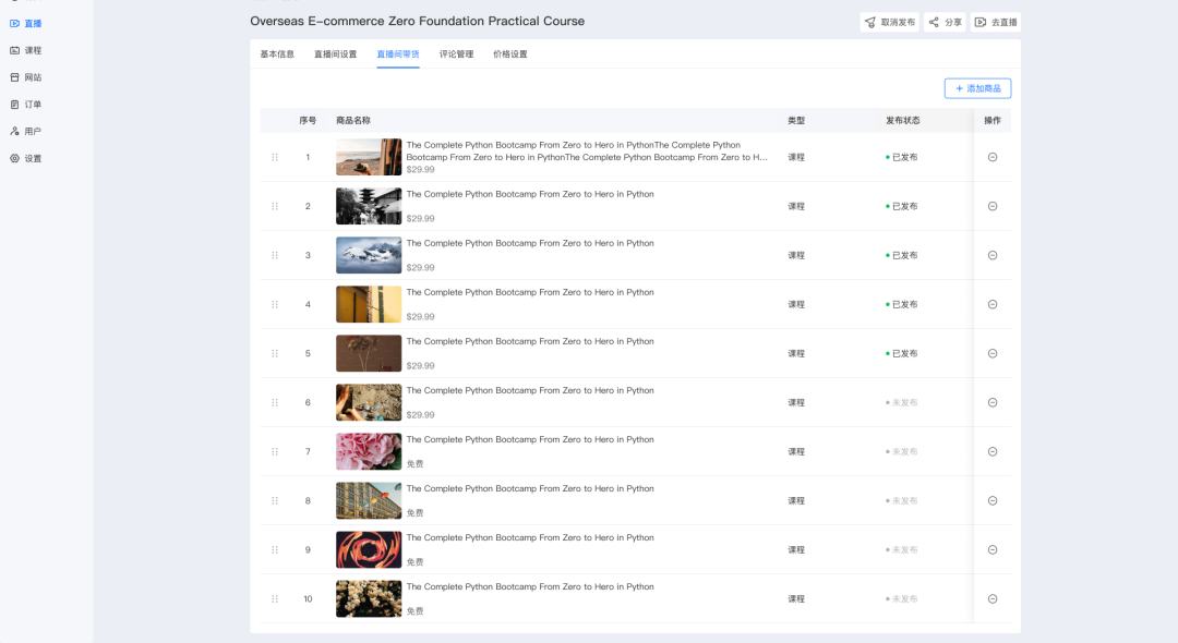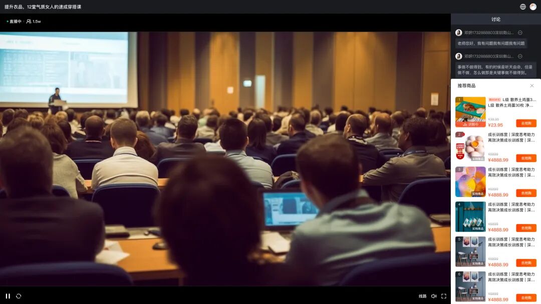 在eLink的直播场景中,商家朋友们可以根据主题添加带货商品,在直播间中进行高清、多角度的展示,可以让用户更全面地了解产品/服务的特点。