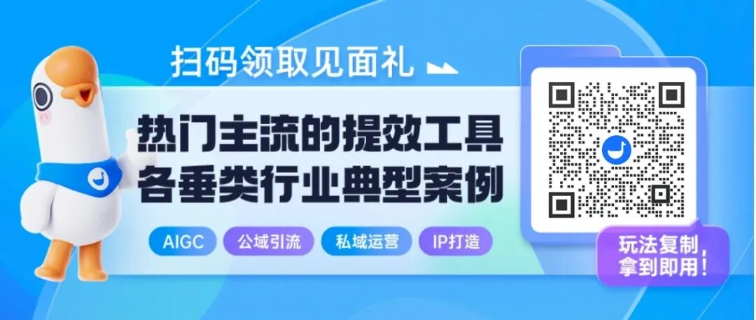 如果你还想了解更多知识创业工具和运营玩法,添加下方小鹅企微或点击文末“阅读原文”,立即领取免费试用权益,获取专属的咨询服务: