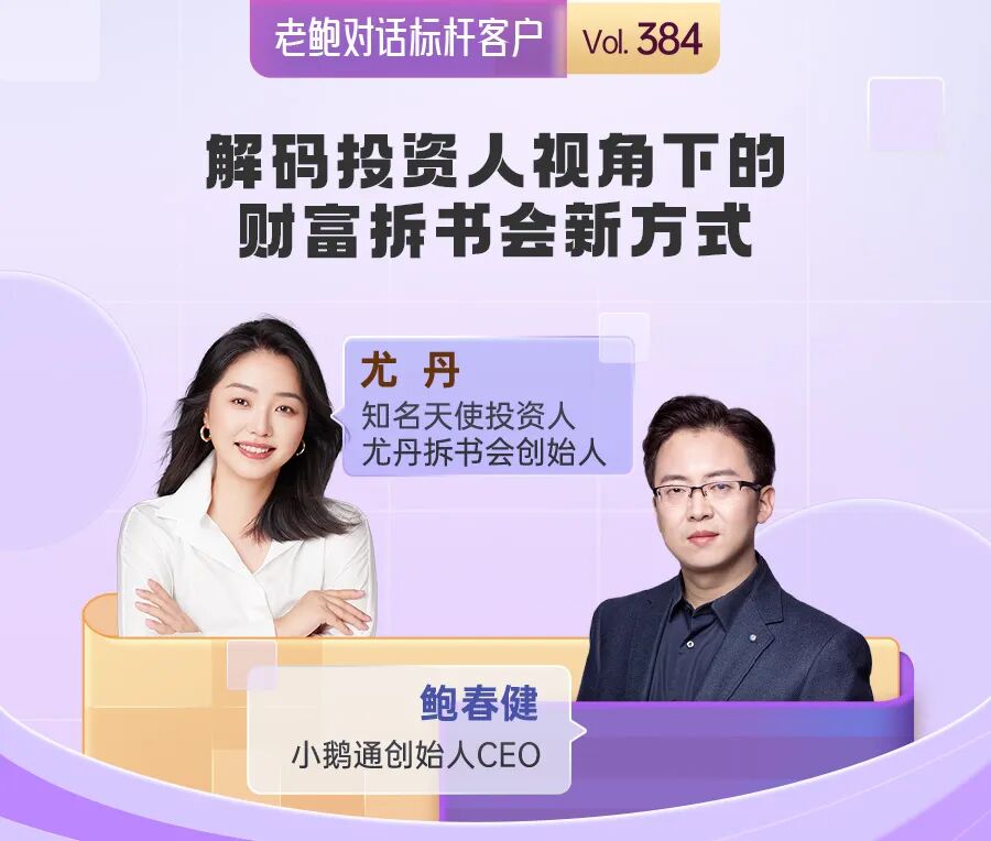 客户介绍:老鲍对话标杆第384期,邀请了知名天使投资人,尤丹拆书会创始人——尤丹。尤丹拆书会以金融视角出发,以书为媒介,以“拆书”为途径,帮助个人绽放,助力企业升级。用投资思维,重塑读书新方式。