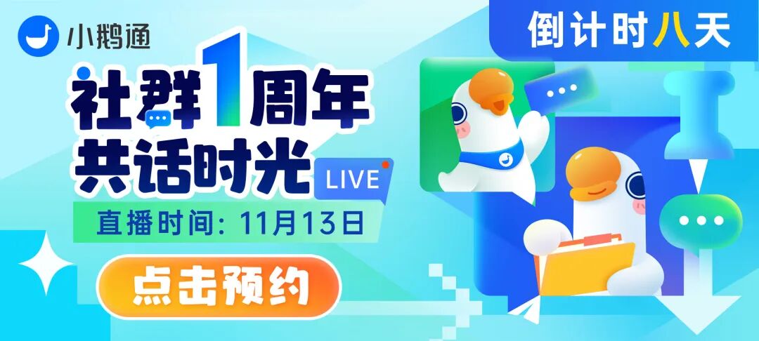 11月13日14:00,“共话时光·小鹅通本地社群1周年”专题直播即将来袭!我们会和大家一起回顾本地社群的成长历程,以及未来的赋能玩法。所有创业的伙伴和对运营感兴趣的朋友们,速度预约!