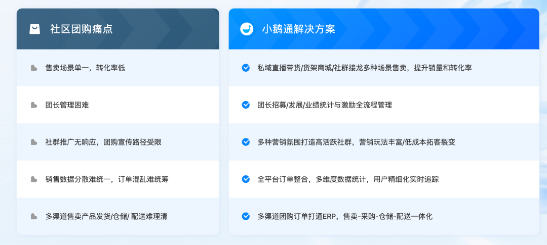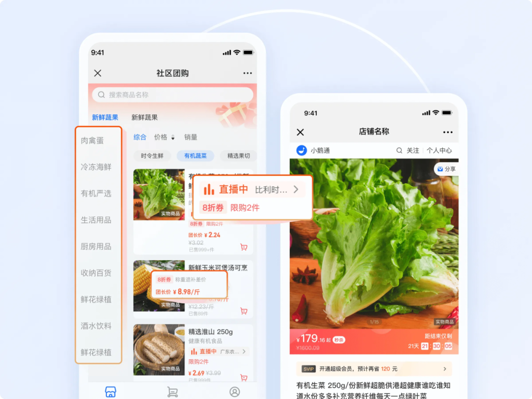 小鹅通【社区团购2.0】全新解决方案重磅推出!一站式完成商城货架、社群接龙、直播售卖等全方位售卖场景,打通线上线下营销全链路。