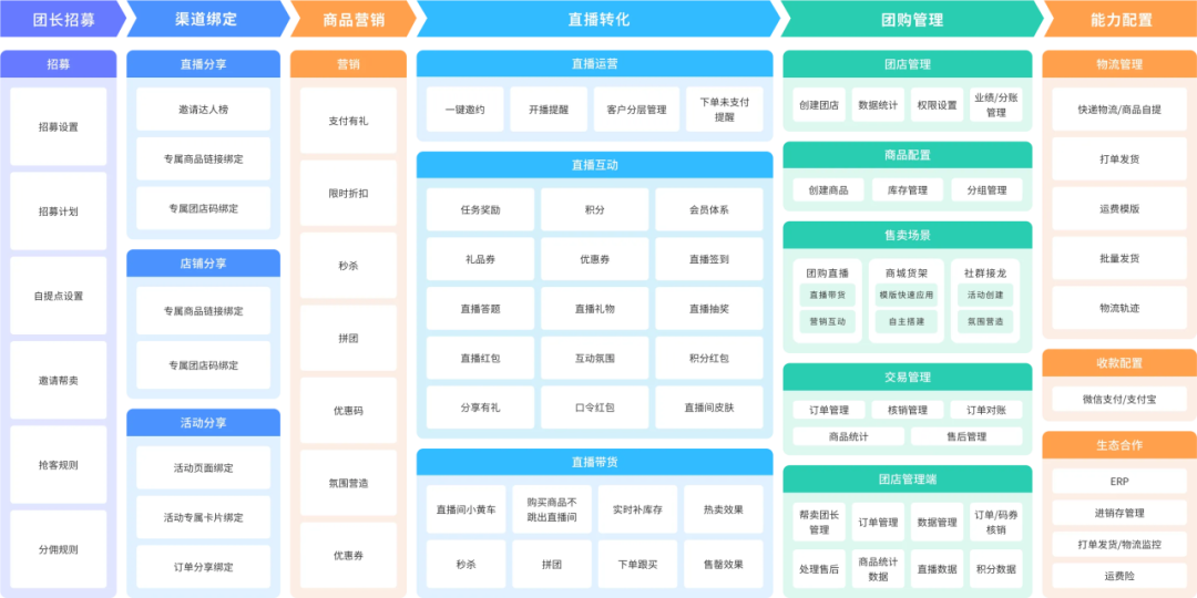 涵盖社区团购【直播售卖、商城货架、社群接龙】三大核心售卖场景👏🏻👏🏻~