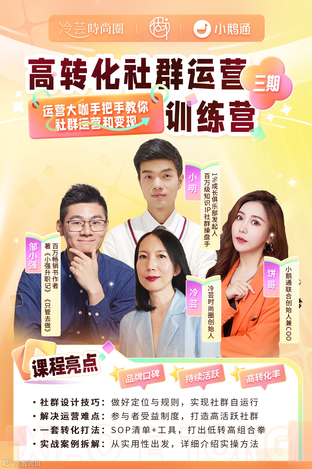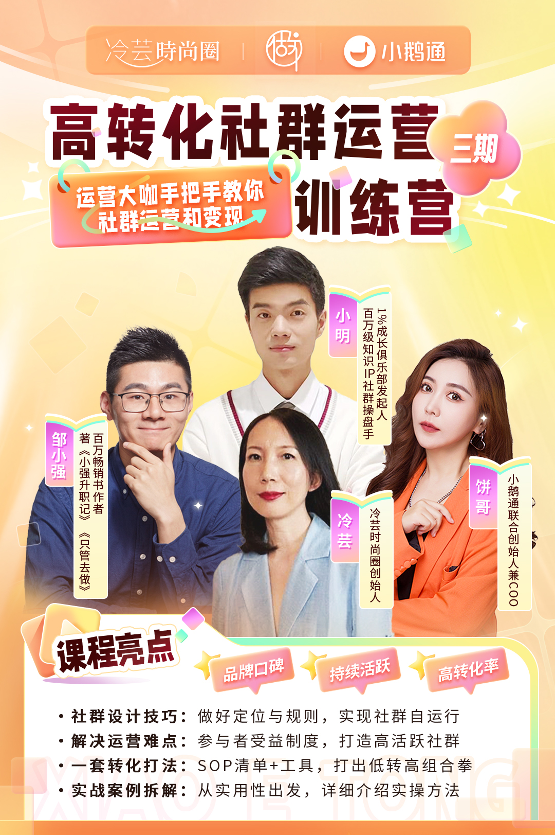 她擅长社群运营,操盘的项目转化率都在50%以上,社群运营课首发名额更是在一天内被抢空。她提供了3个社群运营建议: