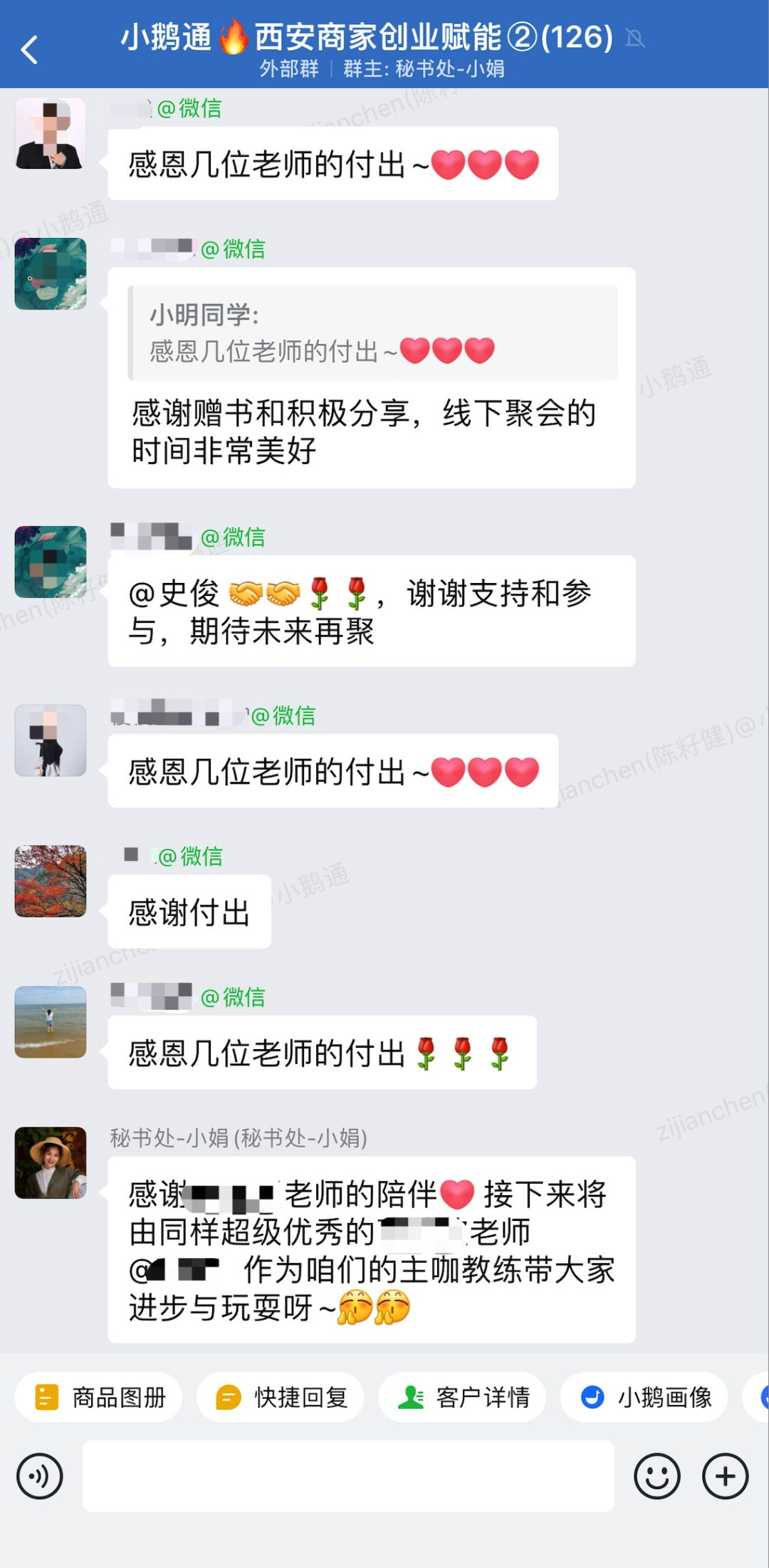 有一些刚开始业务没有做起来的商家,通过教练的辅导,以及其他商家的分享,也逐渐把小鹅通的功能跟场景相结合,把自己的业务也做的越来越好了。