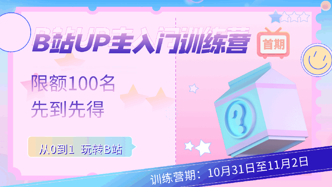 首期「B站UP主入门训练营」火热来袭!无论你是新手UP主、小有经验的知识博主,还是想做副业的视频爱好者,都可以参加!