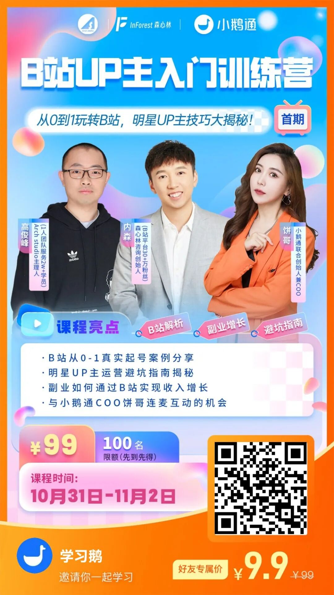 一起从0到1玩转内容创作,拿下明星UP主副业变现的独家秘籍。立即戳海报,拿下专属优惠价!
