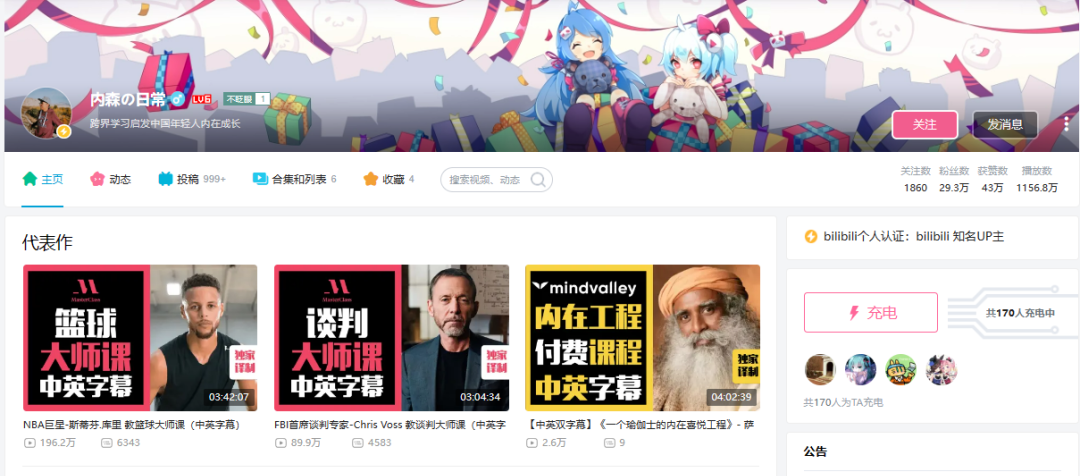 内森老师,前腾讯产品运营,有着7年品牌市场营销经验,副业做B站UP主。他在B站上几个账号的粉丝总数超30w,播放更是破了千万。擅长用高质量的内容,吸引高粘度的粉丝群体。