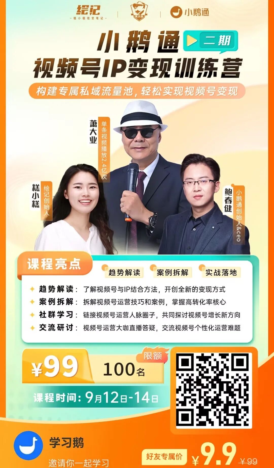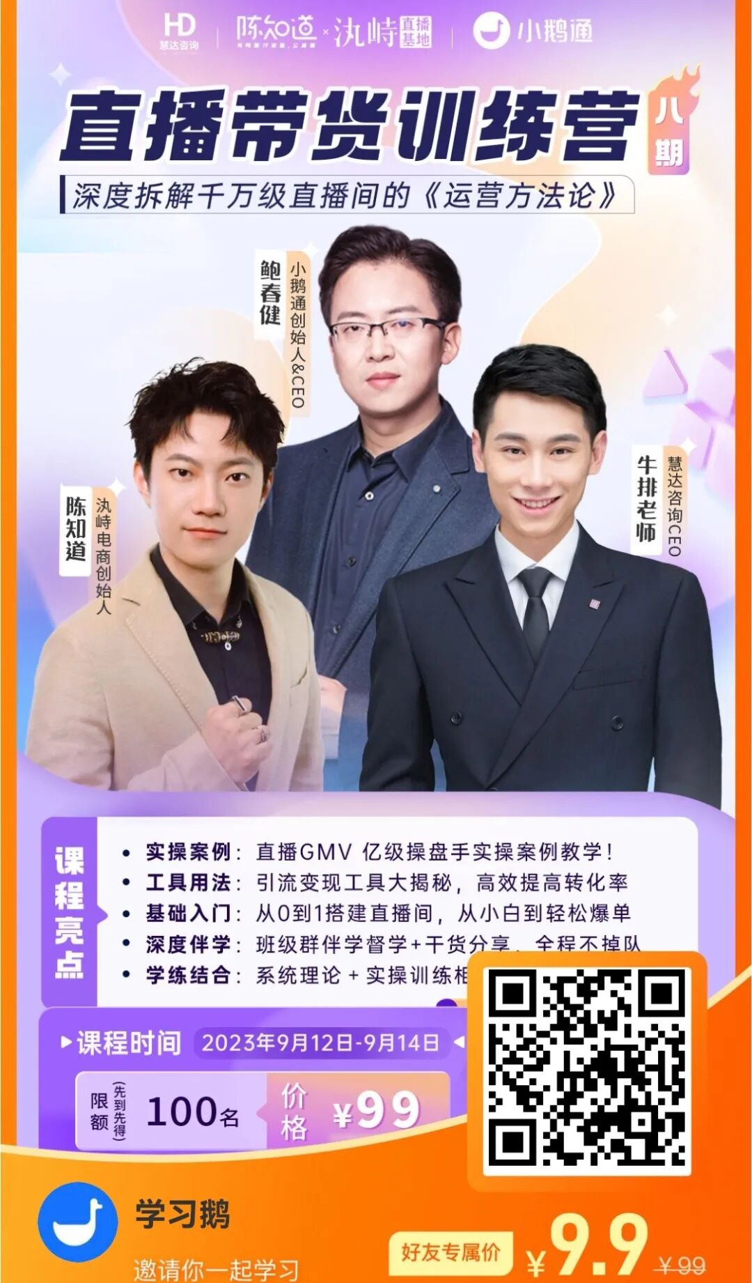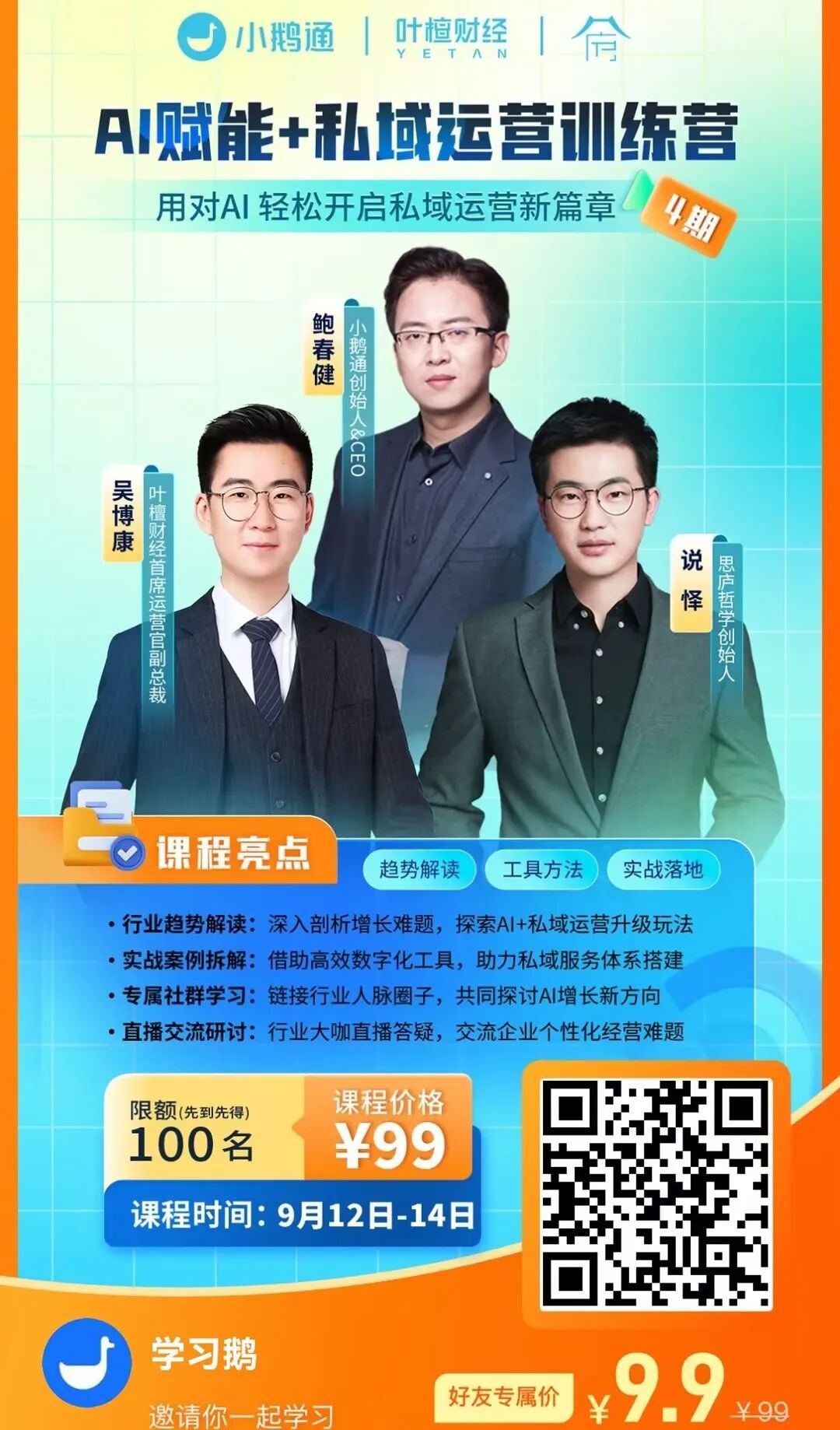3大训练营都是9月12日开营,各限额100个席位,先到先得!拼手速了!