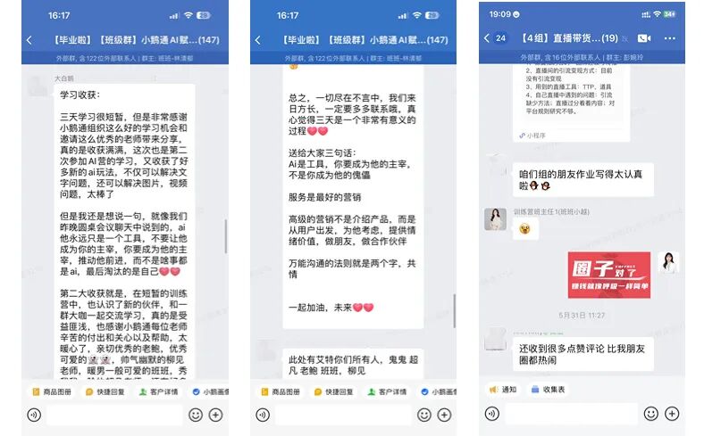 我们联合各行业头部伙伴,总结他们的运营案例和有效经验,推出了「AI赋能+私域运营训练营」、「视频号IP训练营」、「直播带货训练营」等运营场景训练营。