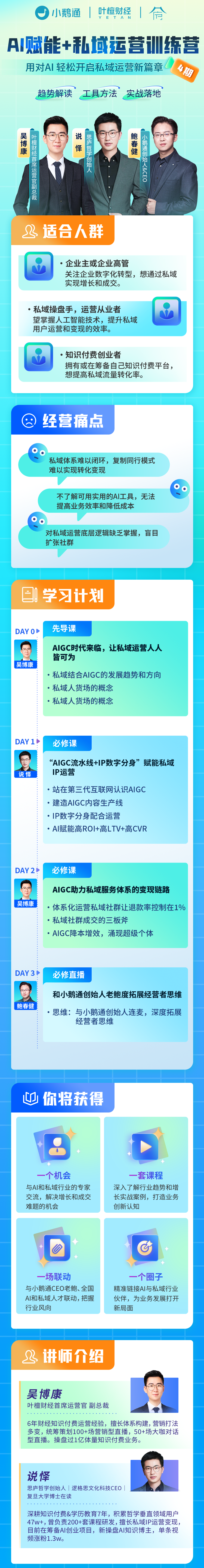 希望通过头部讲师的分享,帮助大家获得更短平快的认知服务,一起深度解析线上运营玩法。