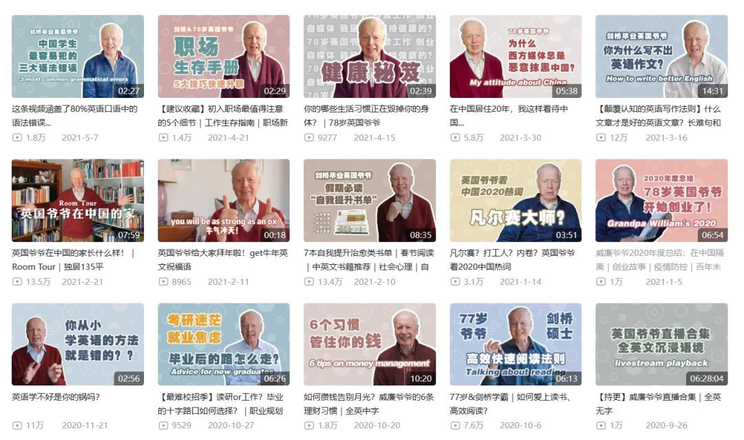 翻翻威廉爷爷在各个平台的视频,就会发现,他的视频不单是讲技巧,还融入了他经历过的文化、阅读收获和人生观点,实用的同时充满对话感。