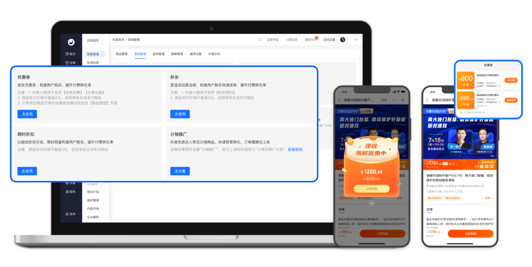 注:因抖音规则限定,使用营销工具后商品实付价格为0元时,不支持下单。