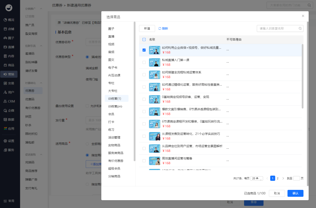 小鹅通管理台 - 店铺 - 营销 - 优惠券