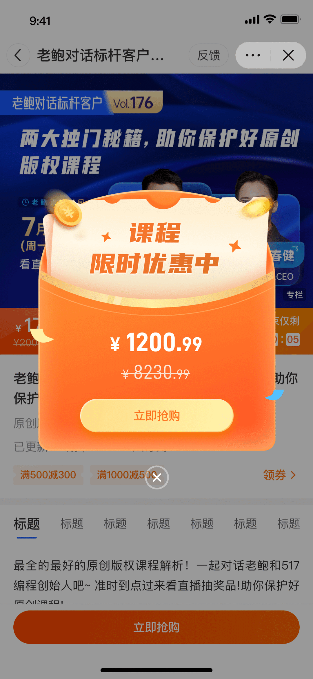 优惠券创建好后,用户进入抖音商品页面后,会直接弹出优惠券弹窗。