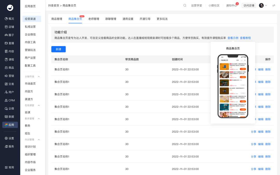 小鹅通管理台 - 店铺 - 应用 - 经营渠道