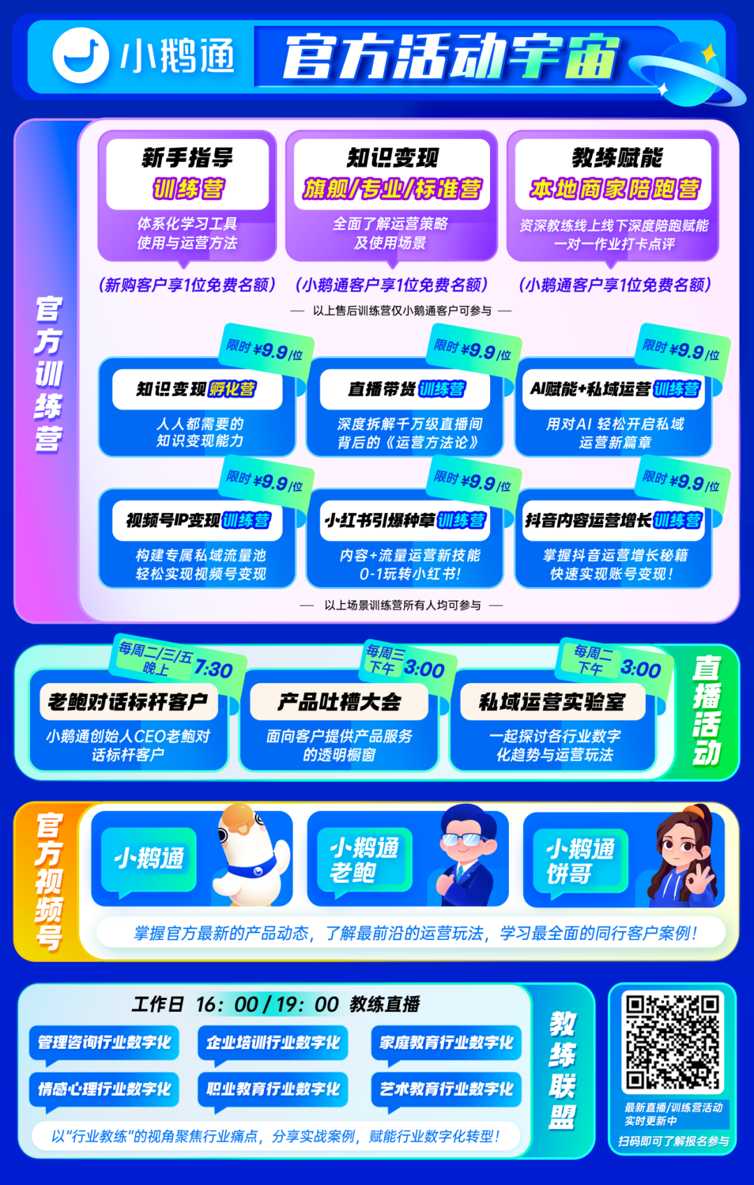 大家都知道,小鹅通的产品和服务升级的非常之快,产品功能已经发展到200+项,且每周都仍在不断地迭代;各类训练营服务和直播等运营活动也不断推陈出新,为大家提供越来越丰富、多元化、全方位的服务体验。