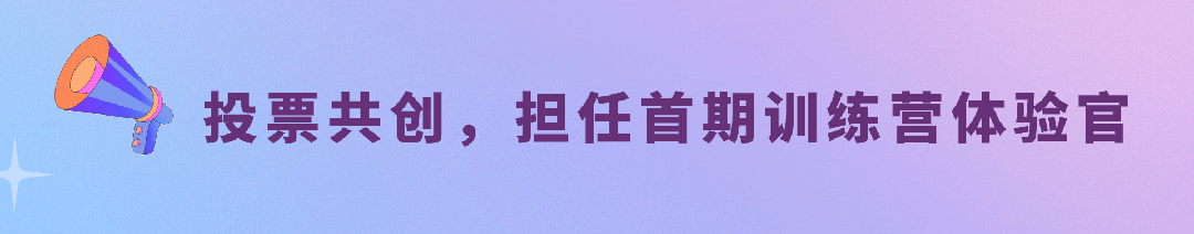 即日起到11月17日12:00,参加投票即可报名“训练营体验官”,共创一个“隐藏款”的爆款训练营!