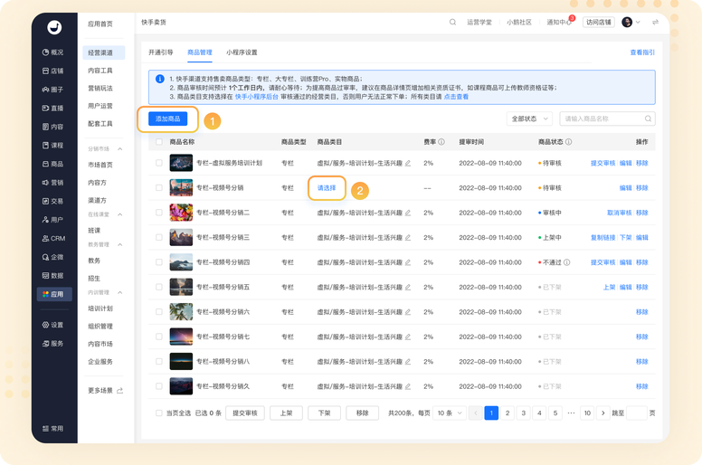 只需在「小鹅通管理台」一键上架商品,1个工作日内快速审核,即可在「快手」APP 中轻松带货,省时高效!