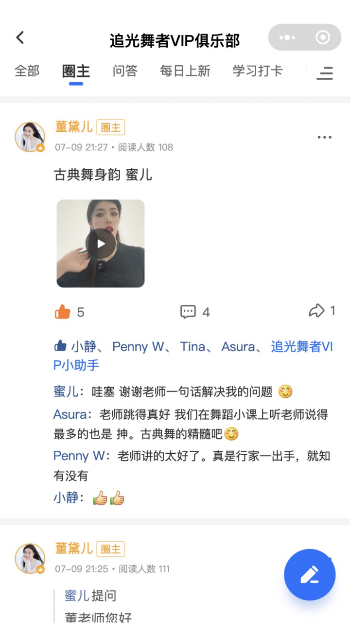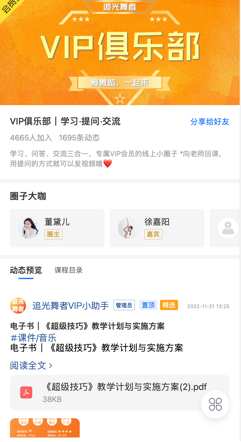 通过小鹅通的功能,「追光舞者」买会员送圈子,为会员提供了超预期的内容。