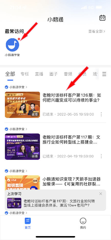 学员打开APP并登录后,买过/学过的课,打开APP都能陈列展示,还会按最新学习进行排序,一下子就能打开学习了!