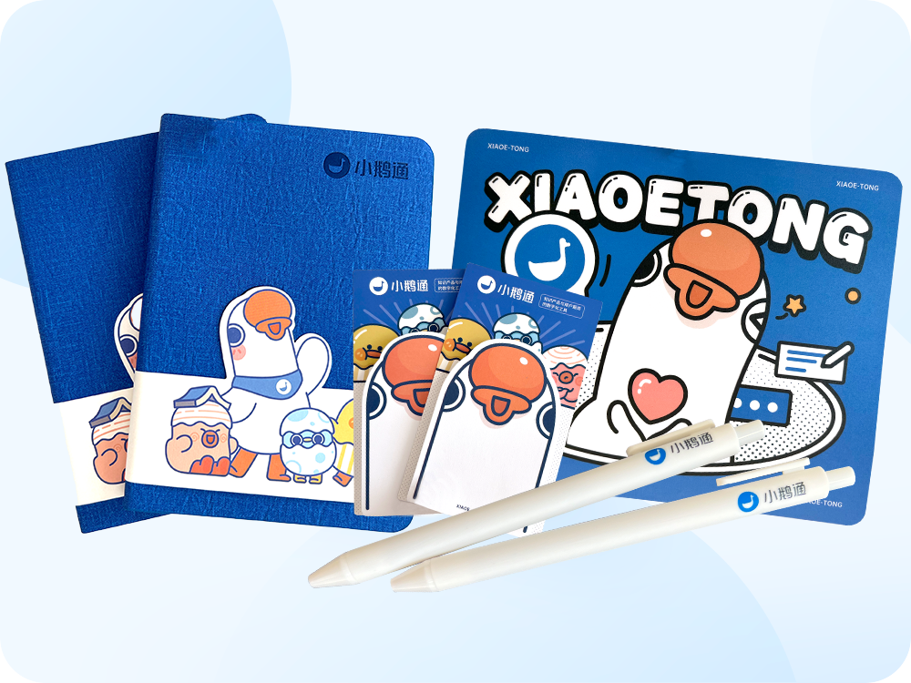 (小鹅通定制的笔记本,便利贴,鼠标垫和中性笔,办公时通通帮你通通解决~)
