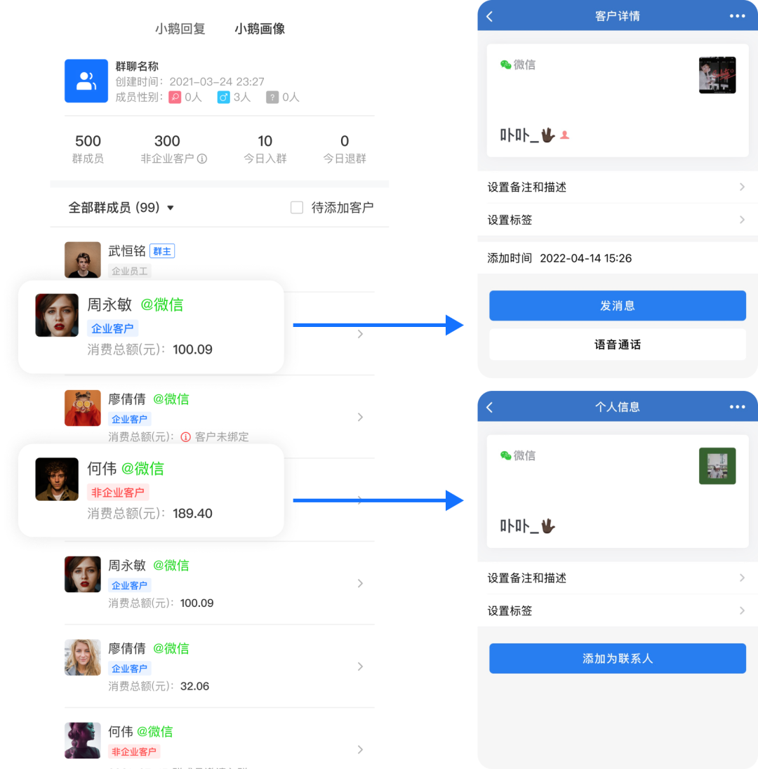 企微助手 - 群聊 - 侧边栏 - 小鹅画像