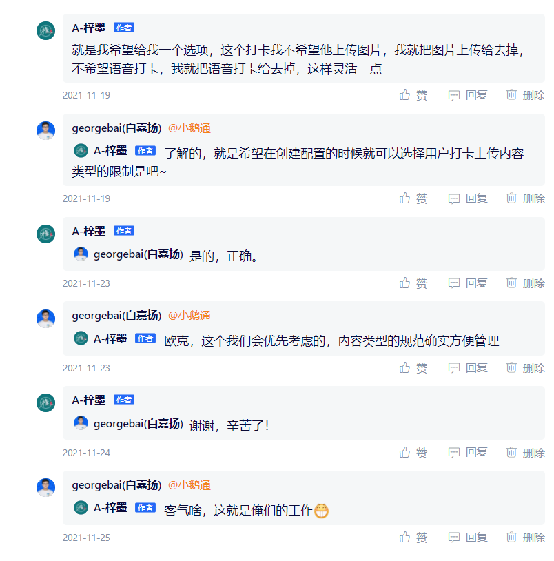 除了嘉宾老师的分享之外,我们在评论区也收到非常多宝贵的建议,都一一记录并提交给各个负责产研鹅跟进!