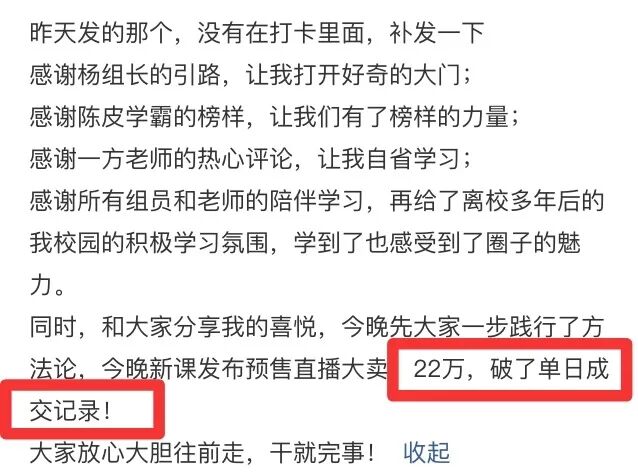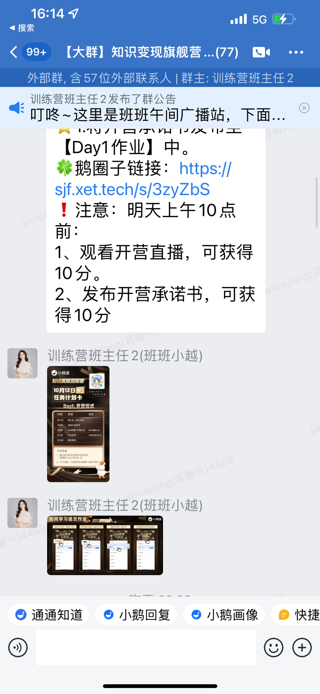 于是,我们在8月开办了第一期「知识变现旗舰营」,通过一周的时间帮助同学们掌握一套私域成交的变现路径,让大家在工作中拿到成果,提升职业竞争力。