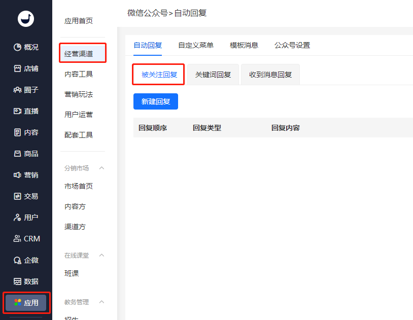 管理台 - 应用 - 经营渠道 - 微信公众号