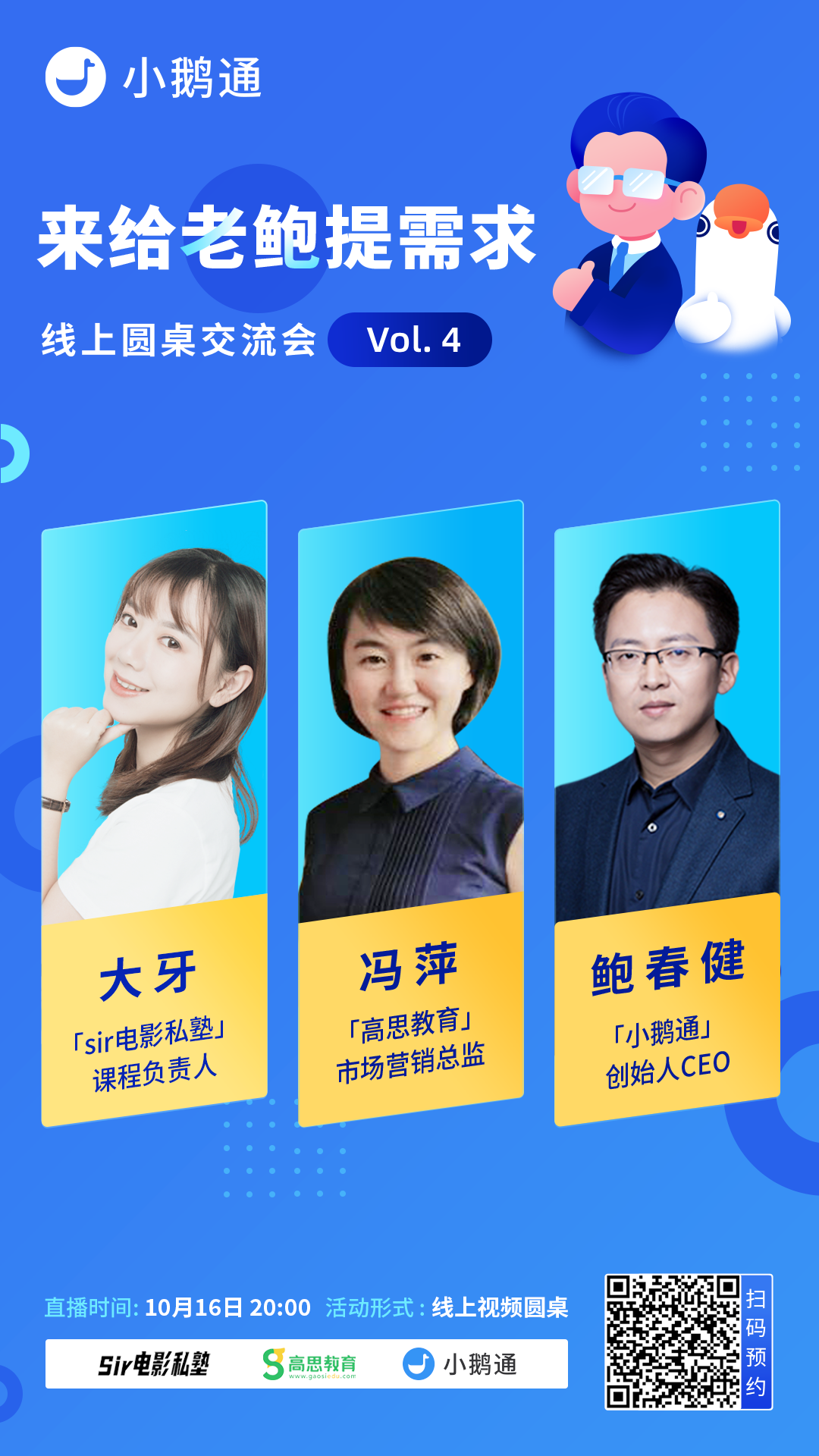 10月16日今晚20:00,《来给老鲍提需求》第四期就要开播啦!