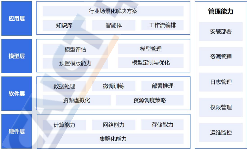 软件层是桥梁,具备资源池化和AI开发能力。通过容器化、虚拟化技术动态分配资源,并集成数据处理、训练、部署全流程工具链,降低开发门槛。 -