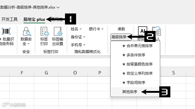 操作方法:单击【易用宝plus】→【高级排序】→【其他排序】。