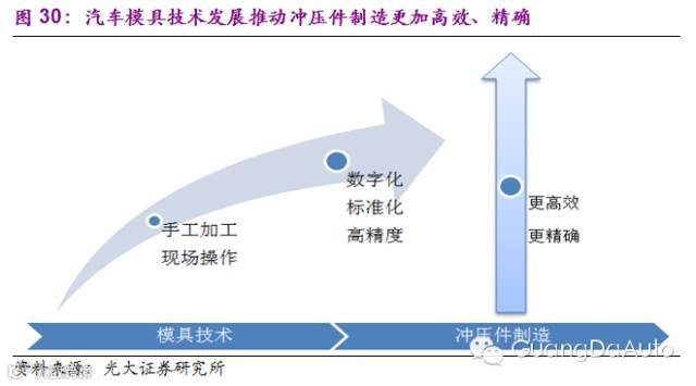 全球市场前景广阔。基于2011-2014年国内模具市场规模复合增速14.8%(高于汽车产量增速),并假设未来增速为7.4%、中国占全球市场25%,预计到2018年,全球汽车覆盖件模具市场规模将突破千亿元[k]。