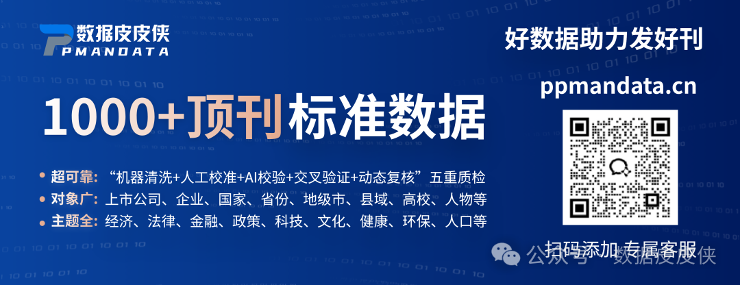 CNPaperData(简称CNPD)是立足大规模数据采集、清洗、挖掘的国家高新技术企业,借鉴Compustat、WRDS等国际知名数据库及FT50期刊专业标准,打造中国特色经济管理社会科学研究型数据库。涵盖上市公司、企业、省份、地级市、县域、高校、人物等研究对象,涵盖经济、法律、金融、政策、科技、文化、健康、环保、人口等各类热门数据。顶刊标准数据,好数据助力发好刊!获取数据地址https://www.ppmandata.cn/trade/list