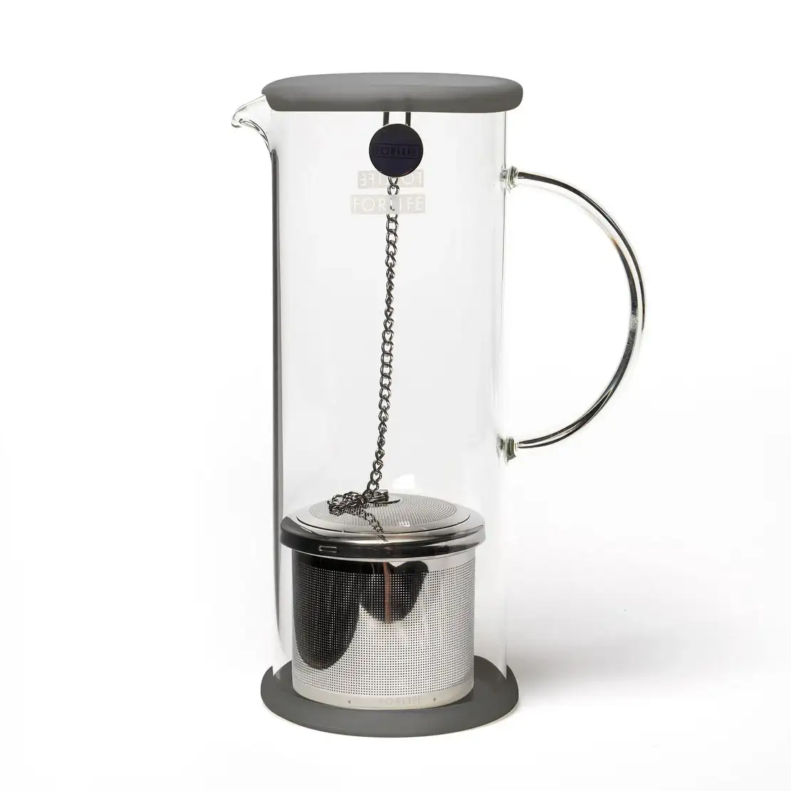 近期有新推出针对高温天气的冰茶系列,即加冰引用风味更佳的产品,比如Dark Iris桃子开心果乌龙茶。除了核心茶品外,该品牌还提供搭配使用的系列茶具,包括冷泡壶、电热水壶和茶杯等。专门用于冷泡的玻璃壶容量约1.4升,直径10厘米并不大,为了方便放入冰箱冷藏格储存。