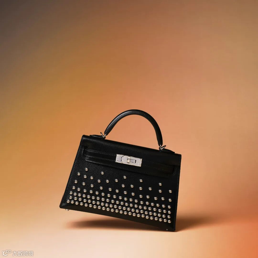 黄金并不是此次拍卖中唯一闪耀的金属。还有一款 Clouté Studded Mini Kelly II 20 手袋,使用钯金制作配件和铆钉,精心布置的铆钉为这款经典手袋增添了摇滚元素。