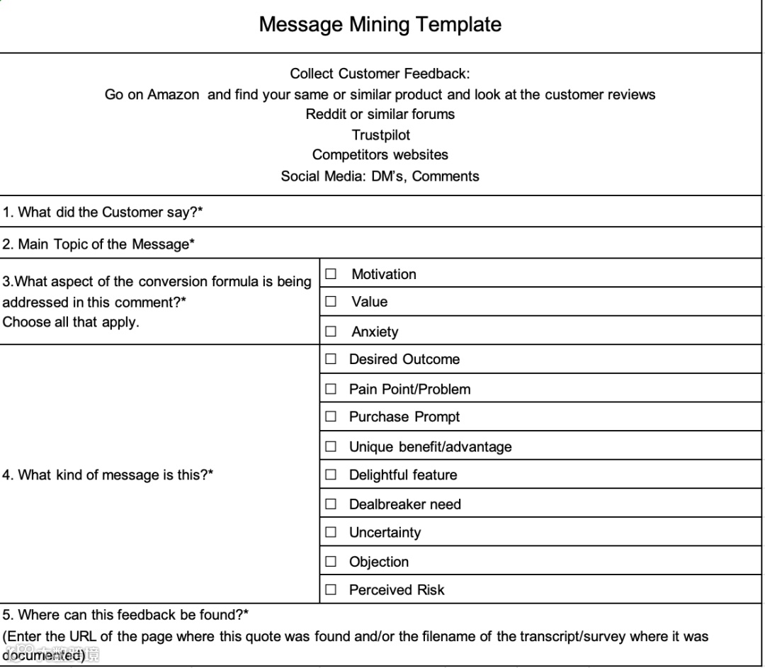 使用这个模版,收集目标市场/客户的转化支持信息: