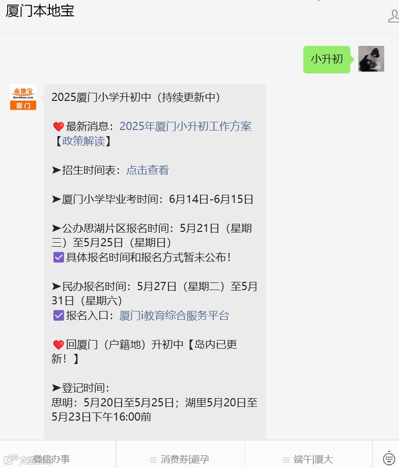在聊天对话框回复【小升初】