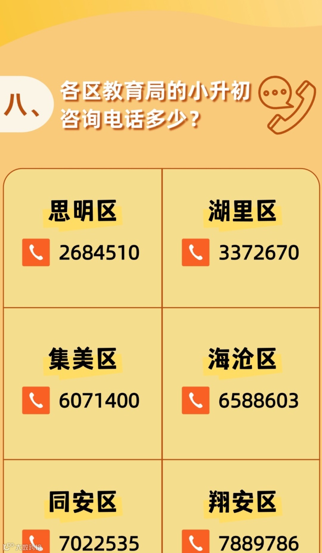 也可拨打各区教育局电话咨询
