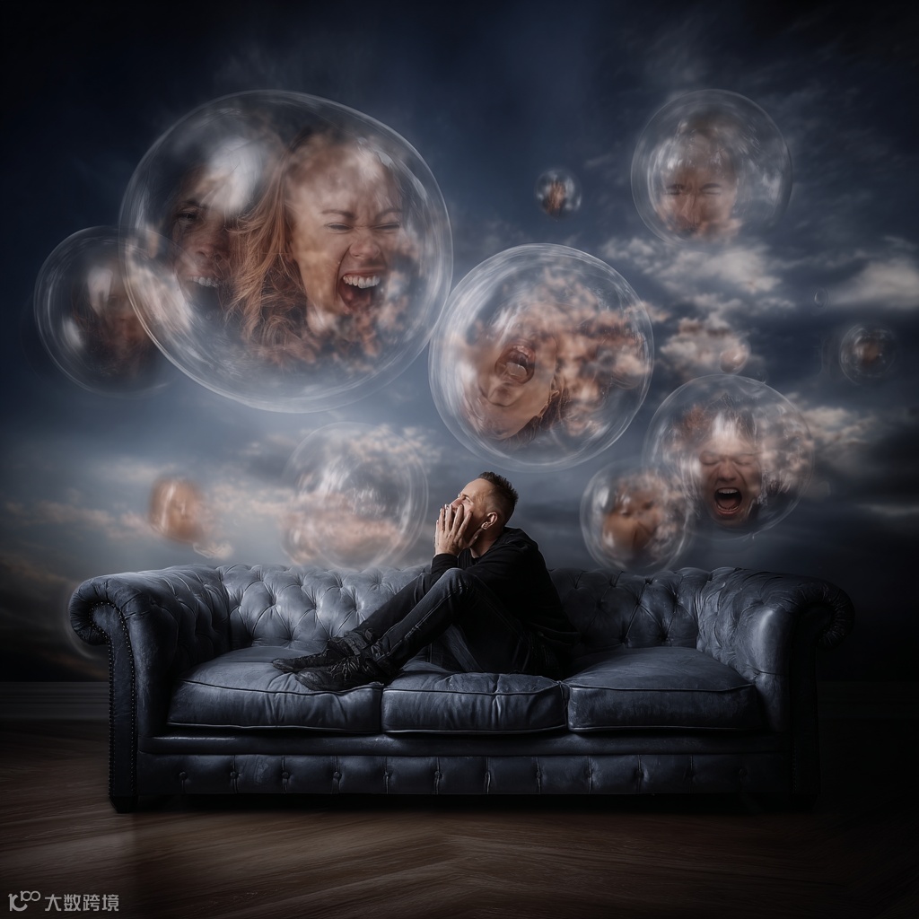 在极简留白中,悬浮的半透明泡泡并非虚空念想,而是被拆解的自我碎片,是内心未宣之于口的情绪独白。