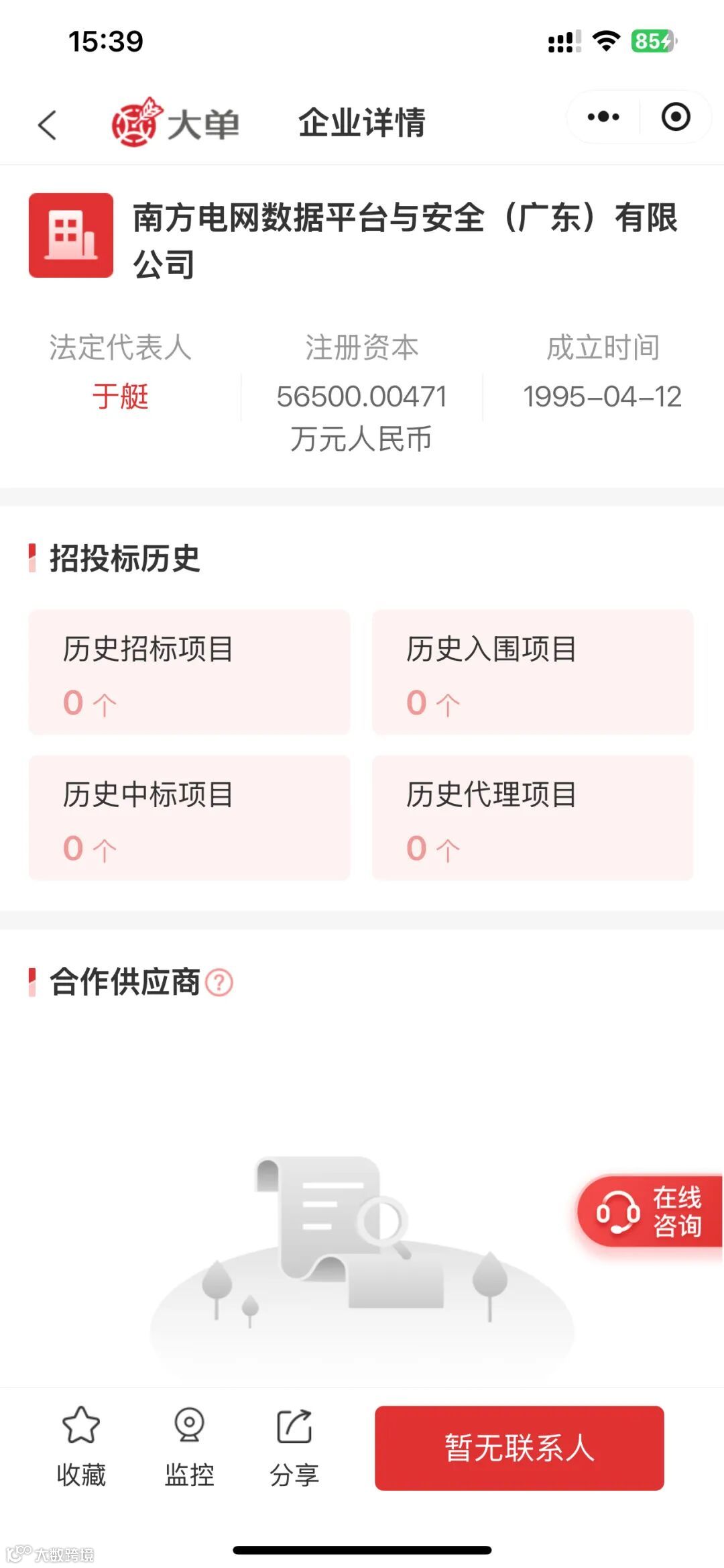 南方电网数据平台与安全(广东)有限公司 556.99298 万元(中)