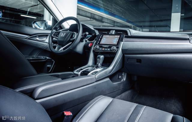 新思域的内饰视觉体验很好,仪表盘中间部分是一个液晶显示屏,虽然小了一些,但分辨率、色彩、功能都不错。自定义功能也比较丰富,你可以选择隐藏转速表,或者取消一些不常用功能的显示。车辆启动时候的欢迎界面也满满科技感。其实这些都不是关键,关键是这个液晶仪表盘是标配的。即使在12.99 万元的最低配手动挡车型上也有,还真是个装高调利器呢!嗯,中控台上的7 英寸电容屏清晰度、功能性都是这个时代的前列水平,整体感觉有点像有些音响公司后加装的那种CarPlay 系统。显示屏左侧还有一些快捷按键,提升了操控便利性。显示屏的自定义性能也很好,车辆设定内容很丰富,而且还可以与仪表盘的显示进行联动,简化了仪表盘的设定操作。美中不足的是屏幕有点过于光滑,如果是皮肤比较干燥的人群,使用的时候会有一些反馈不及时的感受,还好有操作提示音,可以确认操作是否完成。而且从整体来看,新思域的内饰材质质感一般,一些位置如门板、仪表台、后座椅两侧等使用了大量硬塑料件,无论触感还是观感都有些提不起气来。方向盘上的多功能按钮虽然使用上没有啥问题,但看上去不够档次。对比相当排量、相当价位区间的竞品车型,新思域的许多标配还是很厚道的。虽然只提供了4个档次的车型,或者应该说是3 个,12.99 万元是手动挡,自动挡有高中低三款,但主要配置差都体现在了LED 大灯、真皮/ 电动座椅、高科技安全配置上。买个中低配实际上就很划算了。不过后排出风口没有做成标配挺奇怪的,明明很好的后排乘坐空间,少了这个总是觉得缺了点什么。此外,虽然新思域全系都提供了倒车影像和后雷达,但缺少的前雷达还是令人有些头疼。
