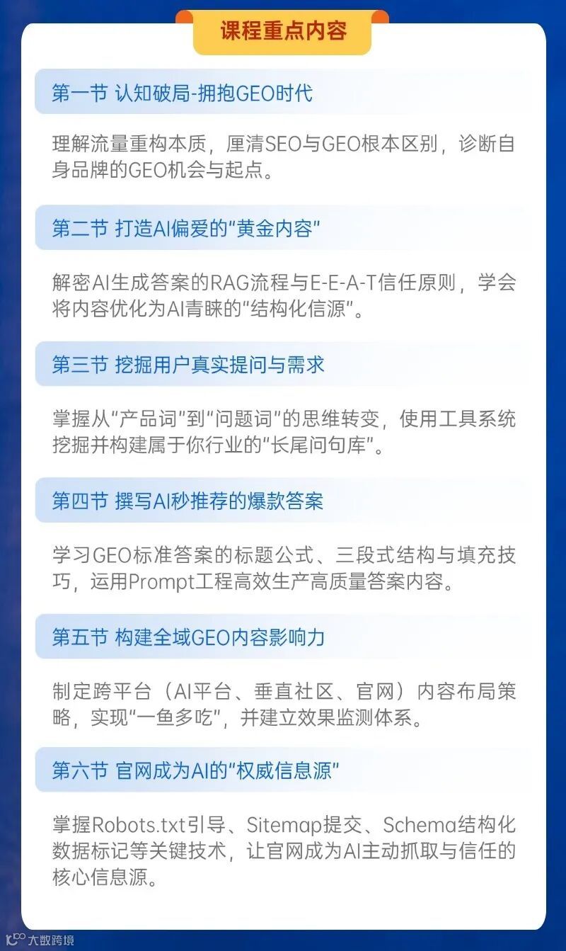 - 所有意识到搜索变革的企业与个人:主动应对技术演进,系统掌握GEO方法论并快速落地。