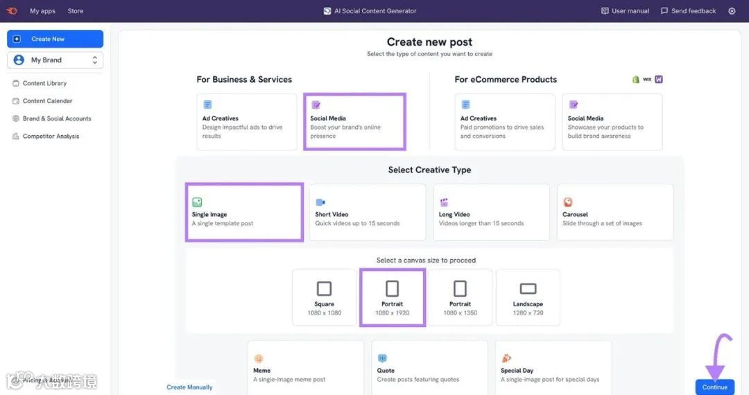 AI社交内容生成器可将已有文章转化为社交媒体帖文。选择“文本发布”类型,输入内容摘要,AI将自动生成适配平台风格的文案。