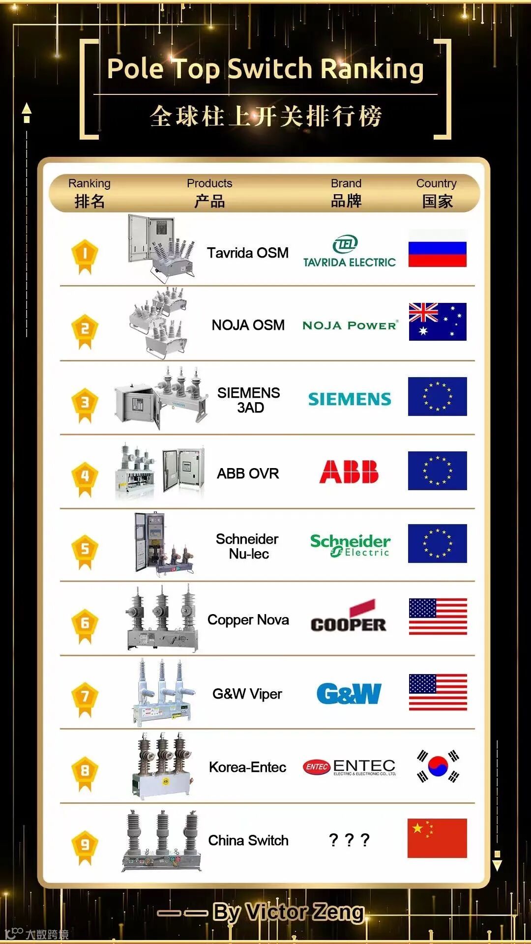 最后放个图,这是公众号的一个出海前辈(Victor)发我的,里面有众多国际品牌,唯独没有中国品牌。但我相信,未来20年,重合器领域必将有一个中国的国际品牌崛起,成为世界知名品牌。而这个品牌,一定是在智能化领域有优势的公司,而不是在开关方面有优势的公司。