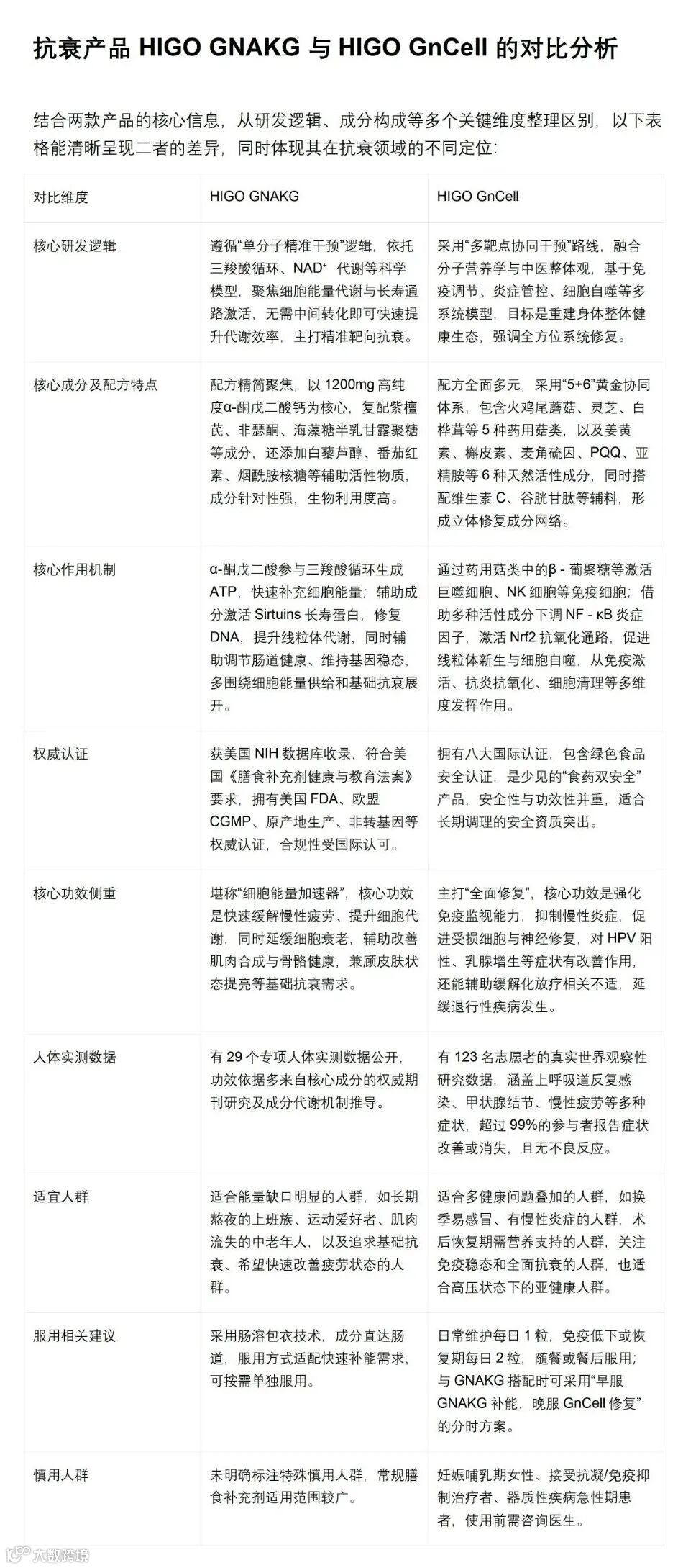 抗衰产品 HIGO GNAKG 与 GnCell 的对比分析