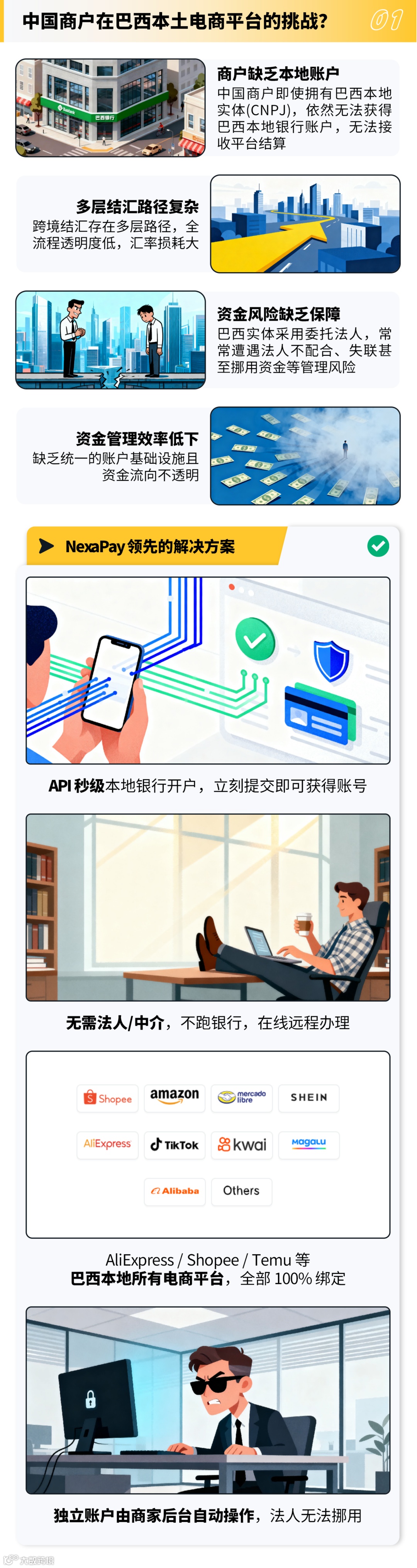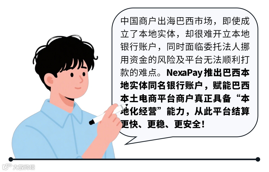 导读:中国商户出海巴西市场,即使成立了本地实体,却很难开立本地银行账户,同时面临委托法人挪用资金的风险及平台无法顺利打款的难点。NexaPay 推出巴西本地实体同名银行账户,赋能巴西本土电商平台商户真正具备