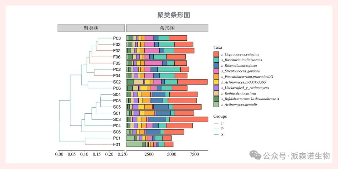 聚类树:展示样品间的相似度,样品间的分支长度越短,表示两样品越相似。